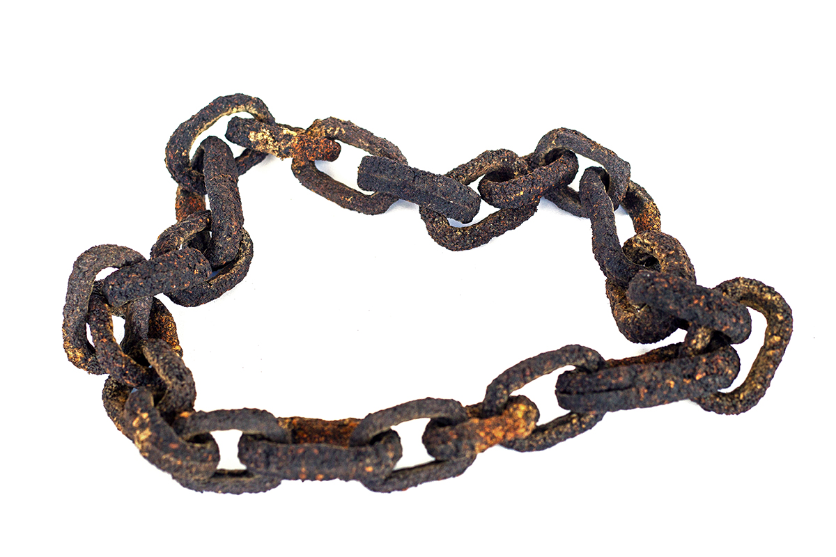 “You Don’t Even Know How To Make Chai!”, 2025, necklace, Assam tea, binder, photo: Krystof Kriz
